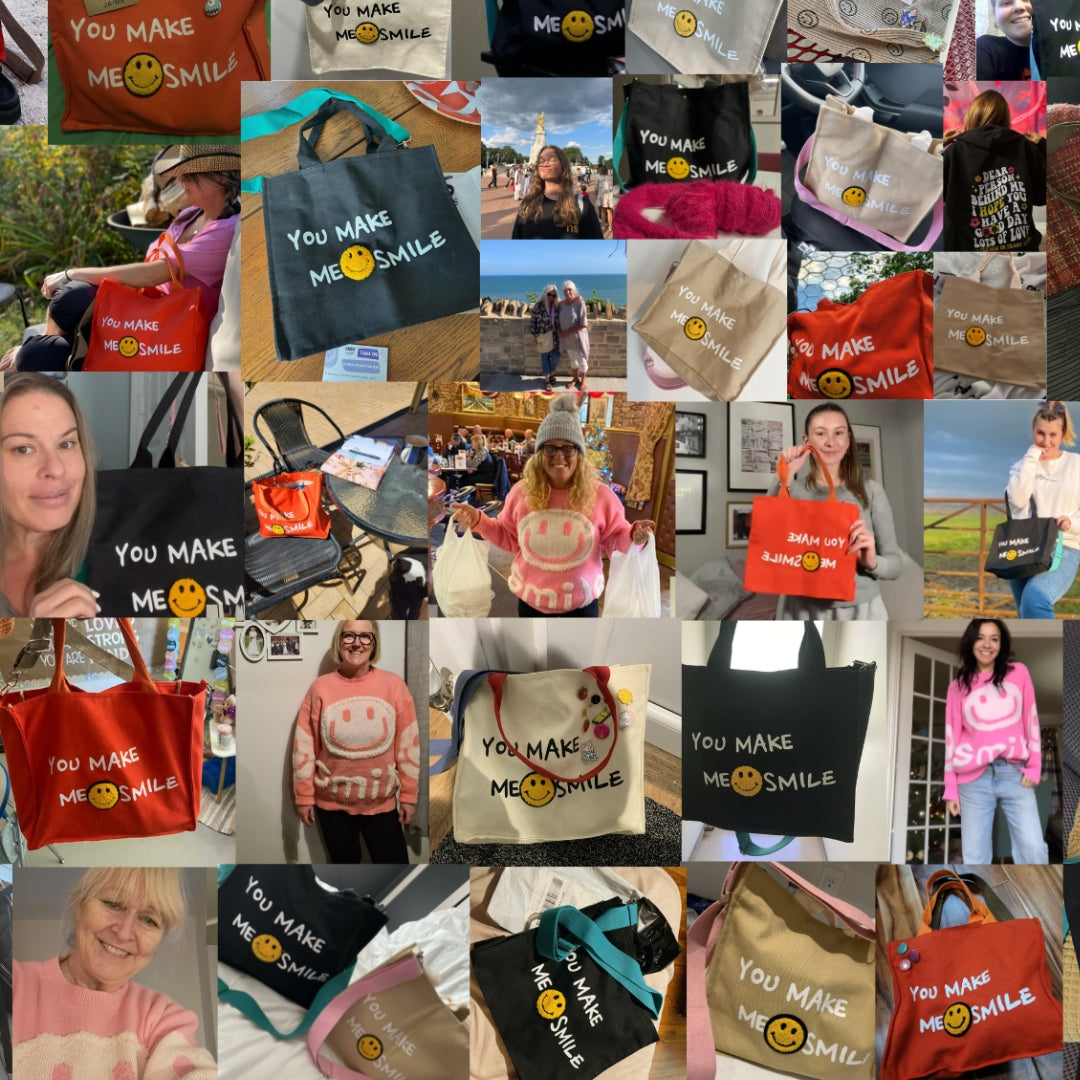 Make a difference today with our viral Made Me Smile Bag. Contribute to an important cause, save lives, spread Mental Health awareness, and look great while doing it.
