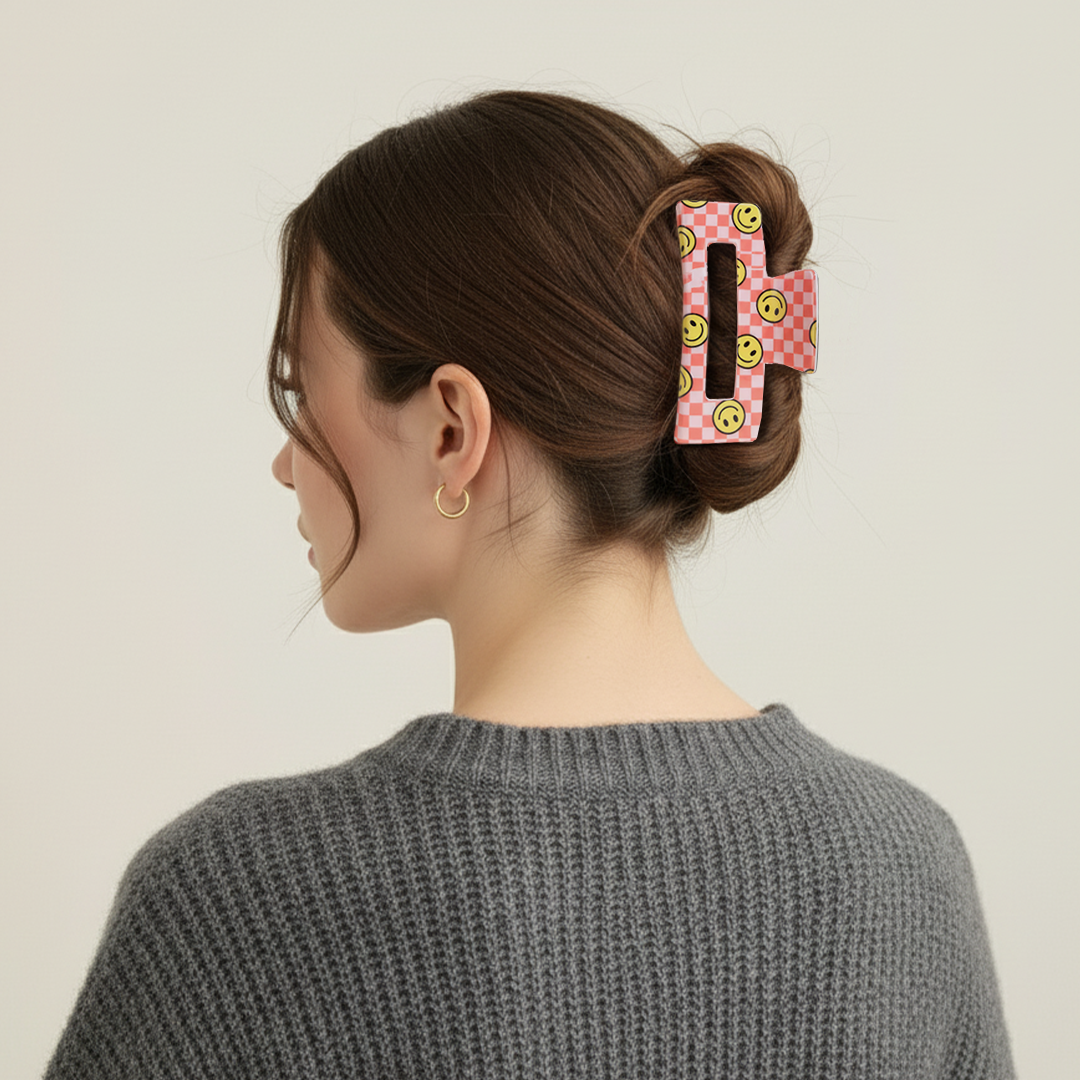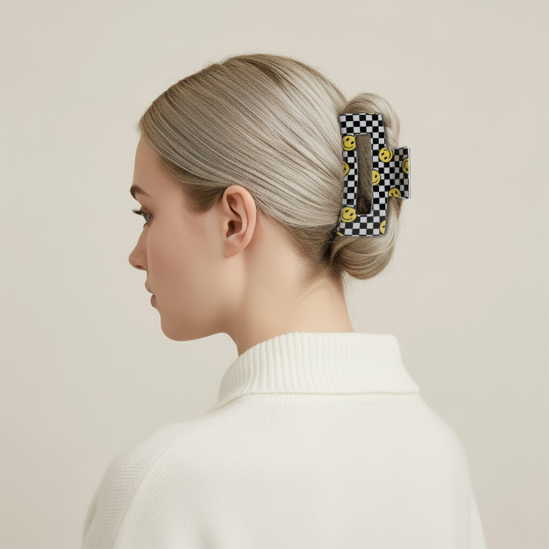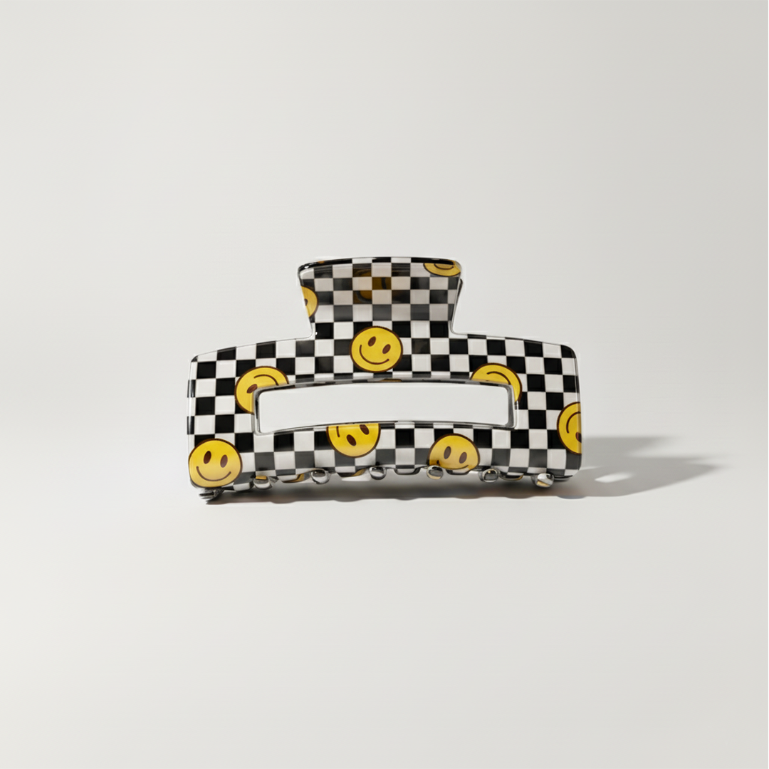 The Smile Check Hair Claw is all about adding a spark of fun and positivity to your everyday look. With its bold checkered pattern and cheerful smile designs, this claw clip is more than just an accessory — it’s a reminder to carry lighthearted joy with you wherever you go.